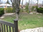 For example, you could plant daylilies in front of the patio in the left corner, with pachysandra in front of them, sweeping in a curve (leaving a small open area for walking). You could then plant azalias or some other flowering shrubs in front of the fence, in between the two back patios. You already have some shrubs in front of the right patio, but you could still repeat the daylilies and pachysandra there. Then, we need to plant under the tree, and do something dramatic by your deck and main patio. Do you have any pictures looking toward the deck, that patio, and the back of your house so that I can get an idea of what's already there?