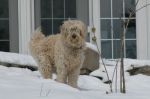 Okay, so here are some photos. Two are my pitiful back yard complete with doggie pee patches of white. Then the cabin that Mike and Maya rented out in the boonies, one taken last week with snow, then one this week, no snow. The resident Labradoodle's name is (no typo) Doood.