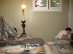 I'm sitting here waiting for the dry wall guys and the painters to arrive. Nick's room is getting a complete do-over, trying to remove that college kid look and replace it with a serene hotel room feeling. We're using a soft green on the walls and ceiling (Benjamin Moore Nature Lover) and then all white bed linens. I hope it will look crisp and inviting.