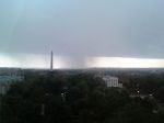 Here's a picture Jim took a few minutes ago from his office building. Yes we're getting YET MORE RAIN, and Lucy doesn't like it!!