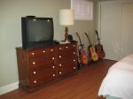 I don't know about the guitars sitting out. I'll most likely put them in the closet. That coffee table has to go too. It's from the cottage and owes us nothing! I'll look for a good one on sale at the end of summer.