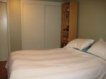 These shots were taken mid way through the overhaul. On July 6th, the painters are coming back to paint the pine bookshelves white. In the meantime, I have an off-white slip cover for that sofa bed at the one end. It's an Ikea sofa and I got a two-fer in the slip covers when I bought it about 6 years ago. I have yet to find the energy to change the darn thing. I'll be heading off to Pier One on the weekend to look at different throw pillows to add the needed colour. And I'm waiting for Ted to find the time to affix the head board. It's actually the footboard of the Jenny Lynd bed in the guest room, the one Chloe sleeps on and is my Facebook avatar.