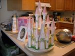 Thank you all about the cake. I have to say that Susan helped me with this cake as well. I had never baked a cake before that required dowel rods. It was fun. I am thrilled that I took pictures before transportation because a lot of the towers fell off en route to the bowling alley.