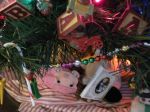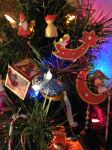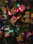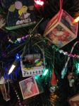 The ornaments are a set of Santa blocks, and small wooden ornaments. There are two bears (a boy and a girl) that my sister bought at a craft fair back in the 1980s, and had personalized for my older two kids. (Arizona-daughter wasn't in the world yet!) The pink hippo at the bottom is for me; I collect hippos. (Long story...)