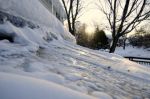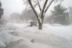Another picture is looking through one of our holly bushes toward out neighbor's house across the street. You can see very clearly what the "roads" look like without having been plowed!