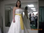 I had to post the picture of the detail because that is all lace. And the woman who hemmed it took all the lace off and then put it back after she hemmed it. And the yellow ribbon was originally a teal colored ribbon that was apparently hand stitched. She said it was a pain to change it.