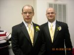 The really light picture is because the photographer had lights set up, but my flash still went off. Either way, still a nice family portrait. Angela kept trying to eat Vinnie's boutonniere. And then a picture of Vinnie and Brian, my new BIL. They clean up nice.