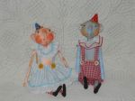 These, as usual, were her own design. The bodies are cloth that she's painted, and the heads are made from paperclay. Aren't they adorable?!!? I love their polka dot ears.